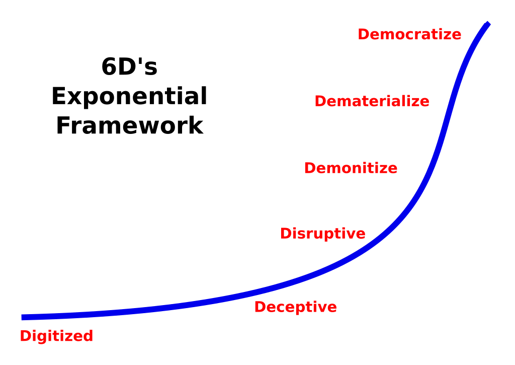 Peter Diamandis and Steven Kotler introduced the “Six Ds of Exponential Growth” as a framework for understanding how exponential technologies evolve and impact the world: